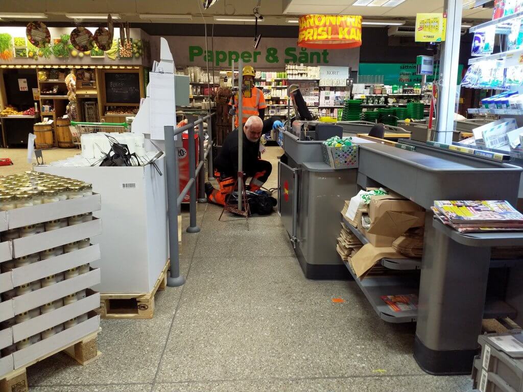 Geobearin teknikot tekivät töitä yöaikaan iltayhdeksästä aamukuuteen, minkä ansiosta myymälä pystyi pitämään ovensa avoinna tavalliseen tapaan koko korjaustyön ajan.