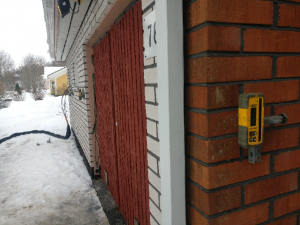 Pohjanmaalla sijaitseva omakotitalo oli ajan saatossa painunut tietä kohden. Ympäristössä suoritetut infrastruktuurin rakennustyöt olivat edesauttaneet savimaan päällä olevan talon painumaongelman pahenemista. Painuminen tuli pysäyttää.